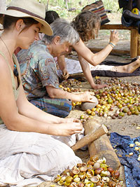 to collect cycad nuts, pandanus, plants to make the pandanus dyes, and